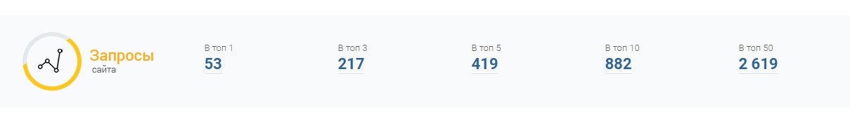 - 2 619 запросов в ТОП-50 Яндекс, из них: