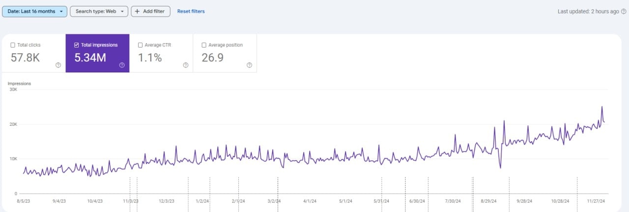 1. Клики и показы по Google Search Console за 16 месяцев: