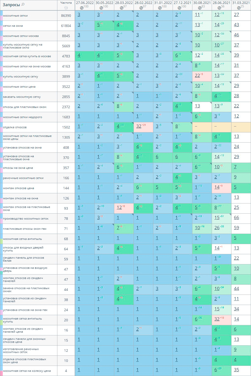 Сайт занимает лидирующие позиции по самым высокочастотным запросам: