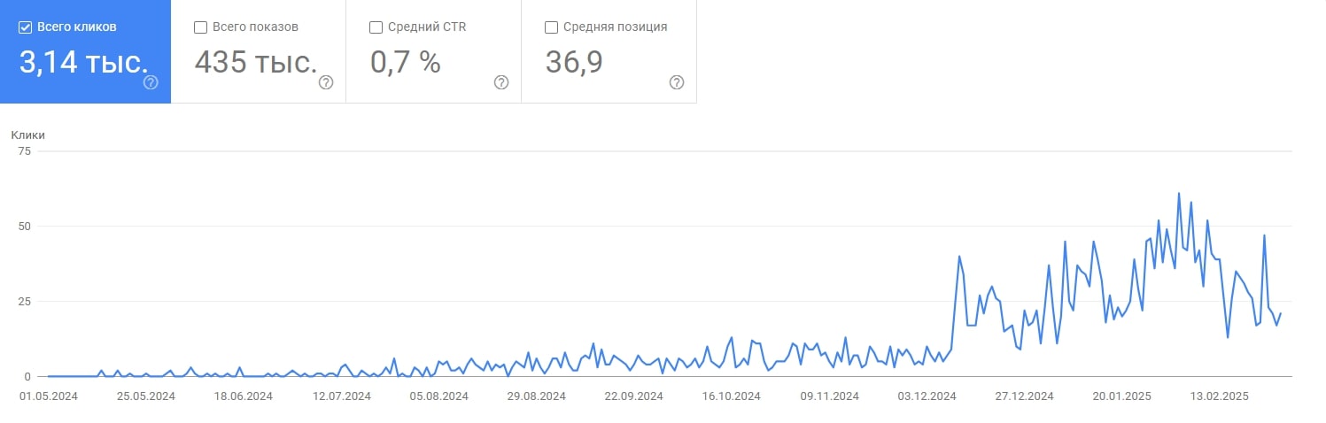Скриншот из Google Search Console (Эффективность)