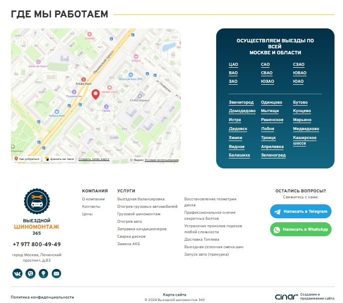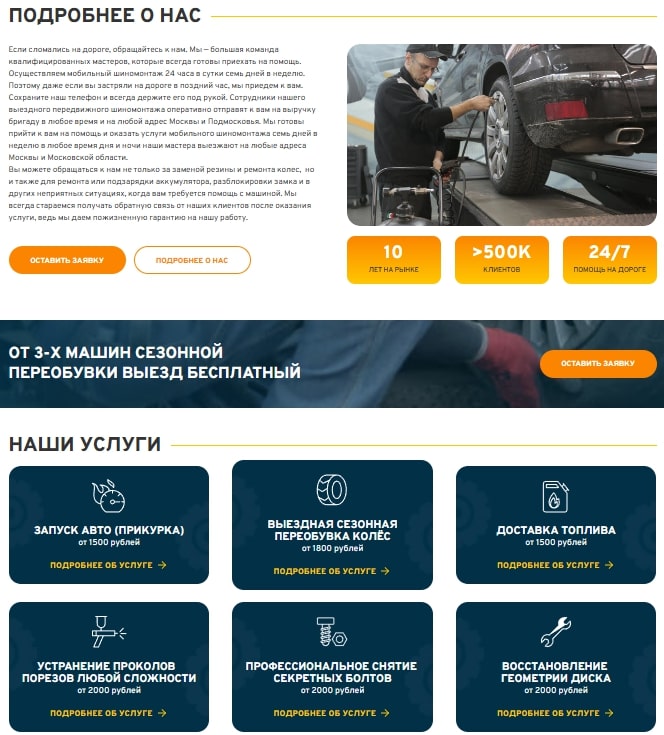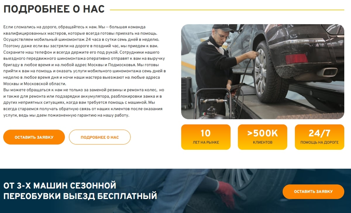 - Создать новый сайт, поскольку на момент начала работы https://shinomontaj365.tilda.ws/ у клиента был сайт собранный на конструкторе Tilda. Создать новые страницы и заполнить их контентом;