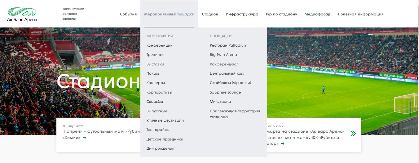 Перед компанией CINAR стояла важная задача – обновить сайт крупнейшего стадиона в Казани.
